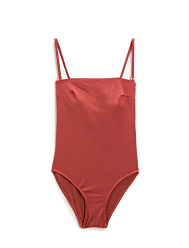 Koton dam basic strapless vadderad spaghetti strappy one piece baddräkt, Brun (Kn1), 42 SE