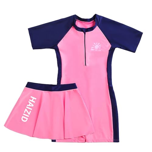 NautySaurs baddräkt för flickor med avtagbar kjol, barn raglan ärm tvåfärgad baddräkt, kortärmade badkläder för stora flickor, Rosa, 9-10 År