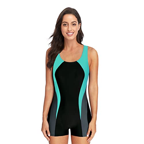 BEACHKINI Dambadkläder Boyleg One Piece Baddräkt Sport Simbaddräkt Öppen rygg,Grått grönt,EU 46