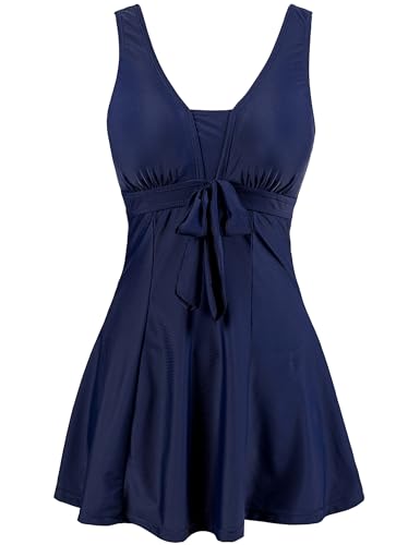 Ekouaer Baddräkter för kvinnor vintage randig kjol baddräkt vintage retro push-up badkläder, BLÅ, XL