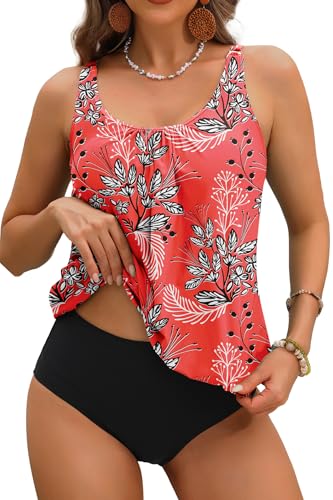 Yonique Dam vadderad tankini baddräkt, Röd blommig, 22 Plus