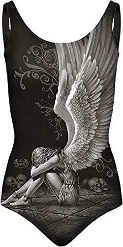 Tuopuda Baddräkt i ett stycke för kvinnor med tryck i ett stycke badkläder för kvinnor kurviga badkläder surfing pool strand push-up vadderad BH med dragkedja UV-skydd, Svart, XL