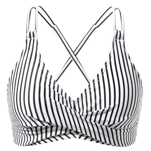 CRZ YOGA Bikinitoppar med V-ringad dam Twist Front Baddräkt Criss Cross Back Baddräkt vadderad Svart S