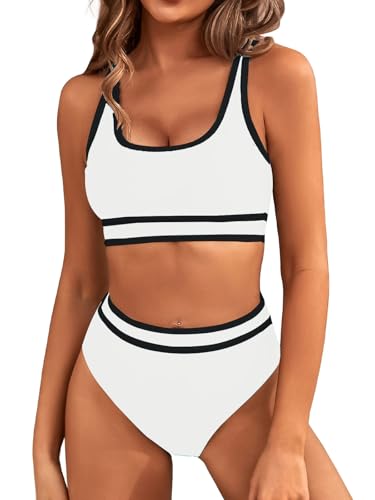 Genfien bikini set för kvinnor, bikiniöverdelar med hög midja, baddräkt med magstöd, utskuren design, vadderad strandklädsel., Vitt, XXL