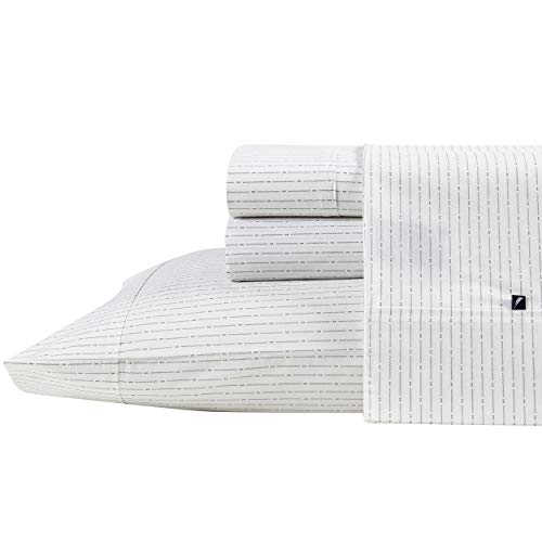Nautica- King lakanset bomull percale bäddset krispigt och svalt, lätt och andningsbart (Michael pläd grå, kung)