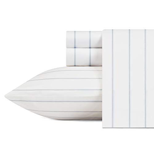 Nautica Twin XL-lakan, bomull-percale-bäddset med matchande örngott, krispigt och svalt helt elastiskt, nödvändigheter för studentrum (Audley Stripe, blå)