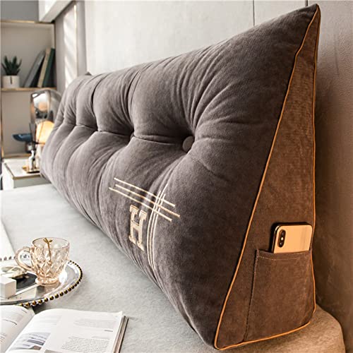 UVCMDUI Sänggavelskudde, triangulär sängkudde, huvudgavelkudde, kil, ryggstöd, stödkudde för säng, soffa, vila och bokläsning, king size, brun, 120 cm (47,2 tum)
