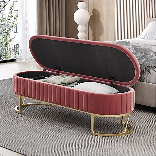 Hiss ottomansk förvaringsbänk, sammetsförvaring ottomansk bäddsoffa med förvaring, bekväm stoppad bänk Sits Entrébänk Vardagsrum Sovrumsbänk(120cm(47in), Pink)