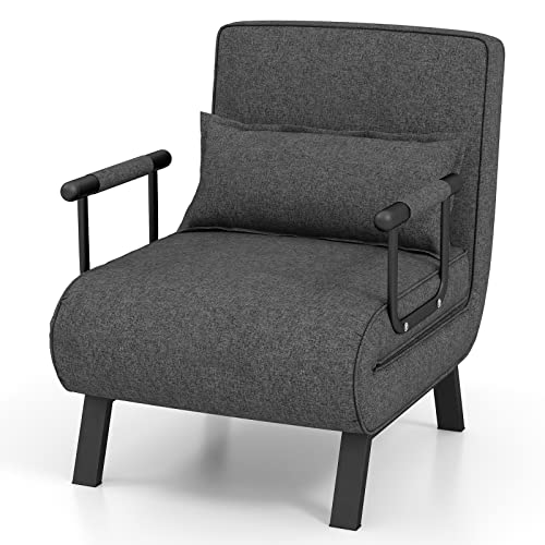COSTWAY 4-i-1 fällbar bäddfåtölj, bäddsoffa med justerbart ryggstöd i 5 steg, avtagbar kudde och vadderad sits, med metallram som kan belastas upp till 150 kg (mörkgrå)