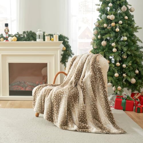 YUSOKI Brun fuskpäls prydnadsfilt, 2 lager, 127 cm x 152 cm, mjuk luddig fluffig plysch lurvig bekväm varm filt för män bäddsoffa sovrum present