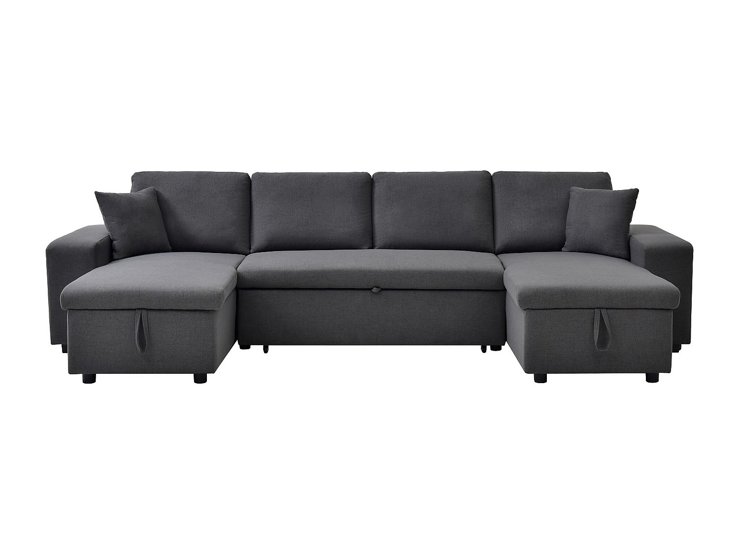 Panorama-bäddsoffa med förvaring och sittpuffar i antracitgrått tyg SELIM
