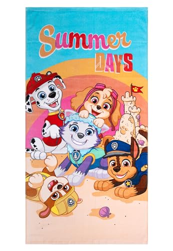 United Labels Paw Patrol strandhandduk för barn, färgglada, sommardagar, 140 x 70 cm, handduk av 100 % bomull, badhandduk för strandsimning