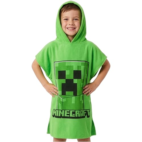 Minecraft badhandduk med huva för barn och tonåringar ombytesrock, absorberande krypande ponchohandduk för simning, bad, dusch, strand, semester, nödvändigheter (grön, 6-9 år)