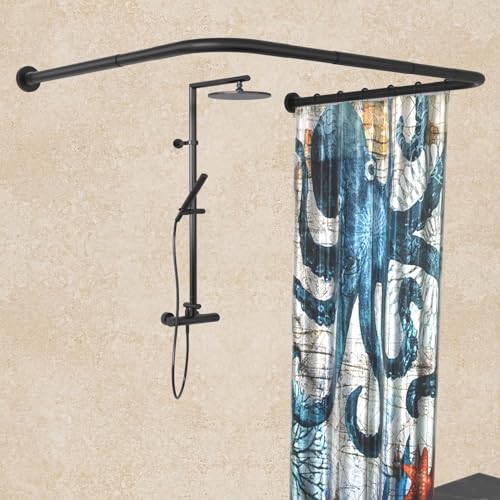Tanxih U Duschgardinstång justerbar rostfritt stål u-formad hylla borr fri installation för badrum, badkar, klädbutik (svart u-formad, längd på båda sidor: 43–65 cm, mittbredd: 88–110 cm)