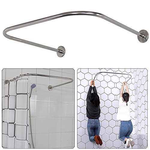 Sikaiqi 304 rostfritt u-format badrum badkar hörn duschgardin räcke, storlek justerbar (U-formad, längd på båda sidor: 43-65 cm, mittbredd: 88-110 cm)
