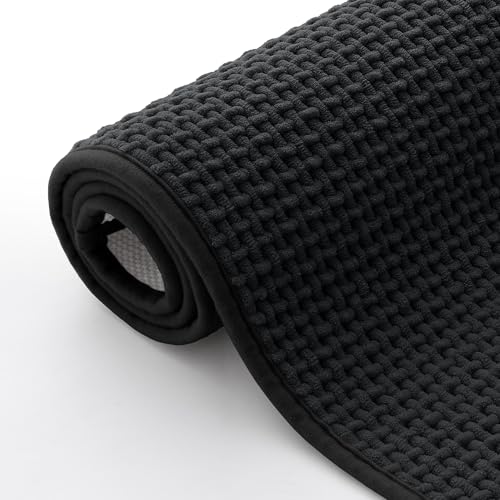 Homaxy Chenille Badrumsmatta, halkfri, tvättbar badrumsmatta, absorberande badmatta, badrumsmatta, duschmatta för badrum, dusch, badkar – 60 x 120 cm, svart