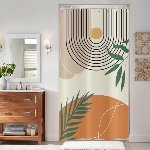 ASDCXZ Duschdraperi i bohemisk stil med modern abstrakt konst, sol, måne, blad, beige, tvättbart, i polyestertyg, vattentätt, för badkar, med 8 krokar, 120 x 180 cm