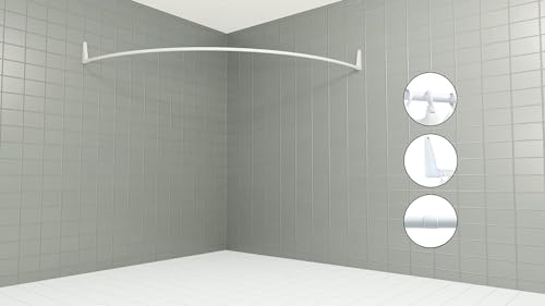 Erica -Böjda duschgardinstänger - 140 x 140 cm, väggmonterad duschgardinstång för badkar, utan fastsättning i taket. PVC-fri plastbeläggning, 100% rostfritt stål.