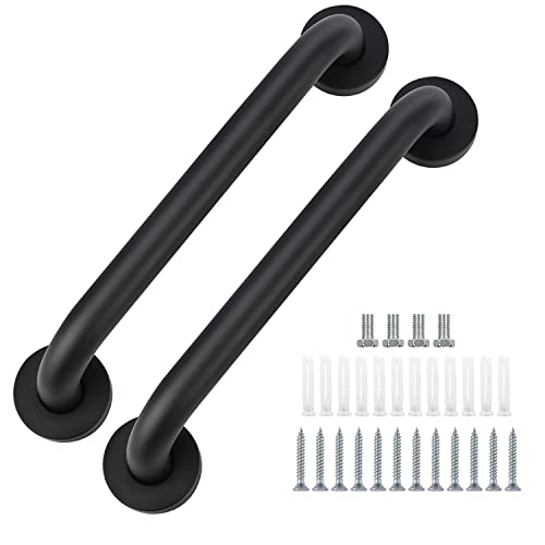 Supregear Badrumshandtag, 2-pack 30 cm halkfri badrumssäkerhetshandtag, 201 rostfritt stål, oljegnuggad svart handstång för toalett, badkar, kök, sovrum, dusch, dold skruv, väggmonterad