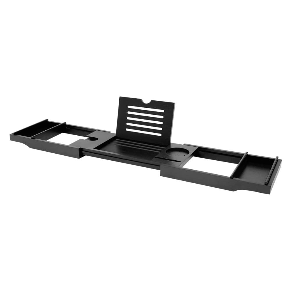 Premium badbricka caddie svart – badbrickor för över badet – badkarsbricka i bambu – expanderbar storlek, passar de flesta badkar