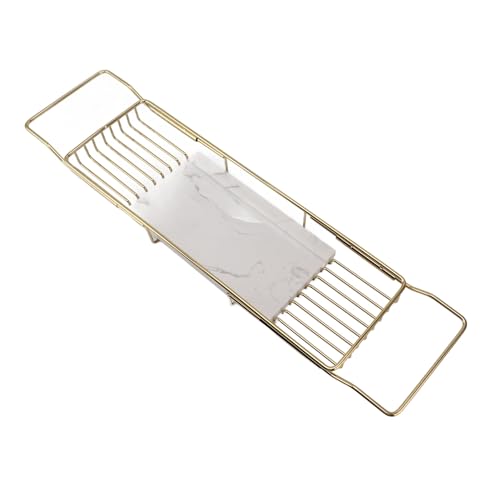 Badkarshylla, hemvärmande heminredning halkfri rostfritt stål marmor expanderbar multifunktionell badkarsbricka för födelsedag (guld vit)