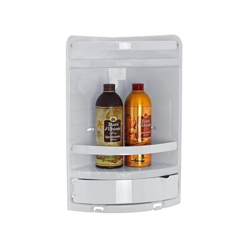 Avilia Vägghylla i plast hörndusch 2 hyllor - badkarshylla utan borrning, 20 x 27 x 41 cm, elegant vit för utrymmesbesparande organisation