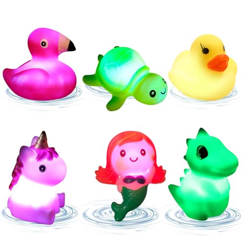 DAJASD Badleksak baby, 6 stycken lyser vattenleksaker, badleksaker, LED-badkarsleksaker barn, badleksak för småbarn, pojkar, flickor 1 2 3 4 år gammal