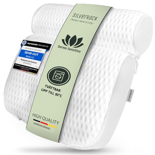 SilverRack Premium badkarskudde vit – badkudde för badkar – kudde badkar med sugkoppar – nackkudde som nack- och bubbelpool nackstöd – badtillbehör – spa