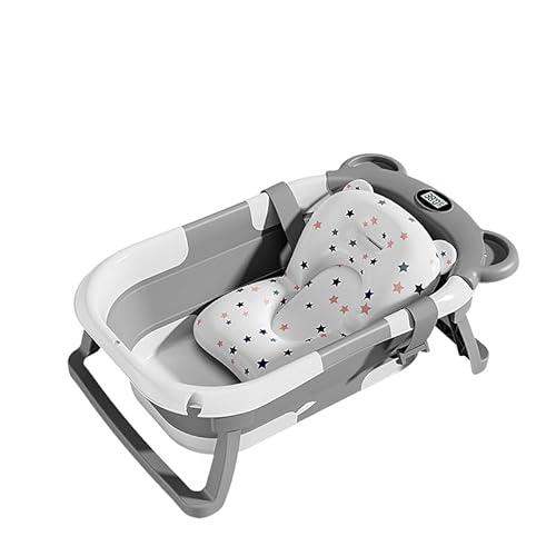 JNGLGO Baby badkar vikbart babybadkar med badkudde baby badkudde baby badkar halkfritt babybadkar för nyfödda småbarn, 82 x 50 x 22 cm, grå