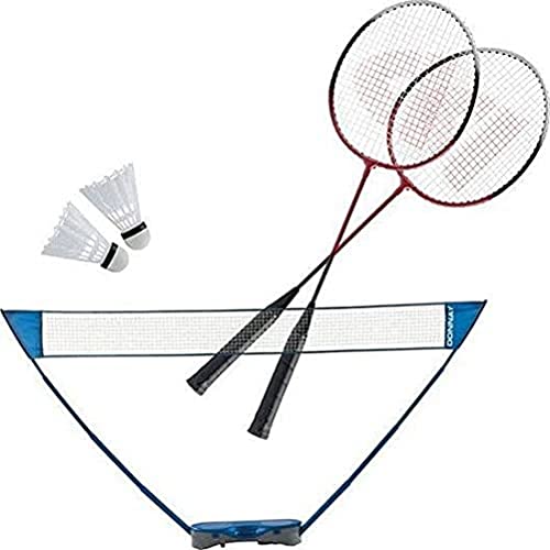 Donnay Badminton set med nät – komplett fjäderbollset för 2 personer – inklusive badmintonracket, fjäderbollar och badmintonväska – utomhusspel, trädgårdsspel, volleybollnät alternativ
