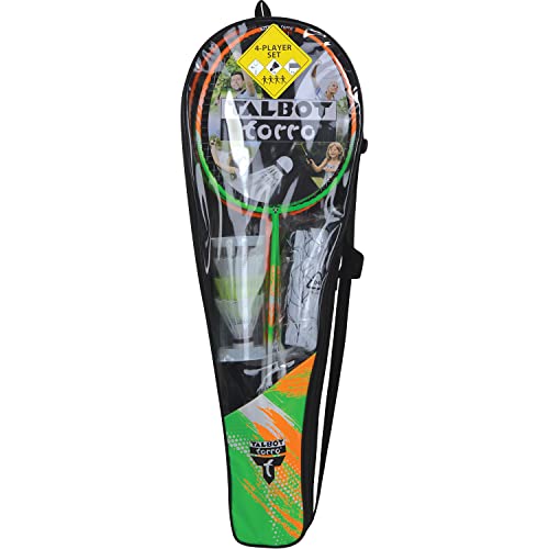 Talbot-Torro Premium Badminton-set med 4 figurer, högkvalitativt komplett set med 4 aluminiumracketar lätta och praktiska, 3 fjäderbollar, kompletta nätset, i högkvalitativ väska, 449416