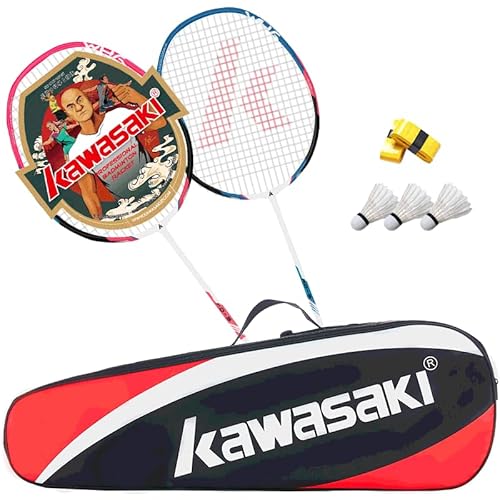 Kawasaki Badminton racket set 2, professionell badmintonracket set med 3 bollar, 1 racketväska, 2 fjäderbollracket för träning, sport och underhållning