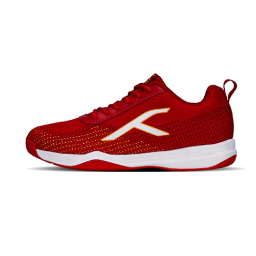 HUNDRED Xoom Non-Marking Professional Badminton Shoes for Men | Material: Faux Leather | Suitable for Indoor Tennis, Squash, Table Tennis, Basketball & Padel (Red/White, Size: EU 43, UK 9, US 10)