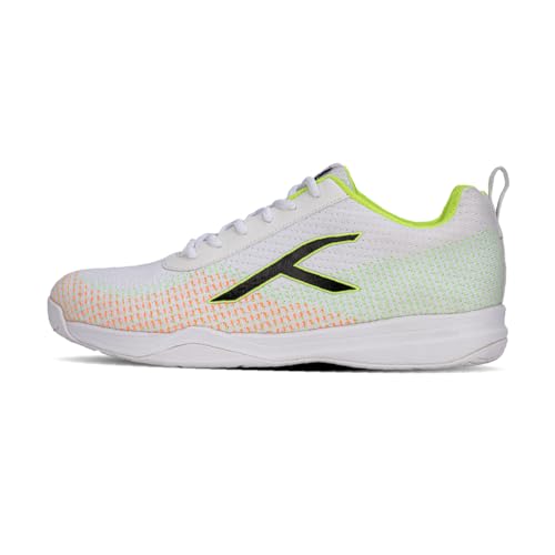 HUNDRED Blade Lite Non Marking Badminton Shoes (White/Lime/Orange/Black, 8 UK/ 9 US/ 42 EU) | Unisex | Material: Knitted upper & Rubber sole| Perfect for Squash, Table Tennis, Volleyball, Basketball