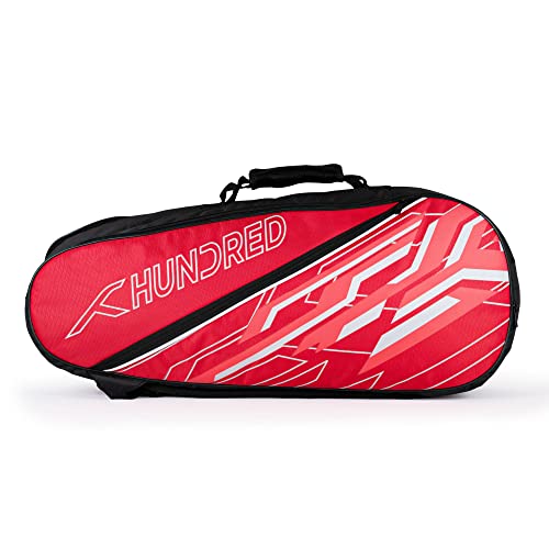 HUNDRED Two Step Badminton & Tennis Racquet Kit Bag (Red, Size: Medium/6in1) | Material: Polyester | Multiple Compartment with Side Pouch | Easy-Carry Handle | Padded Back Straps | Front Zipper Pocket