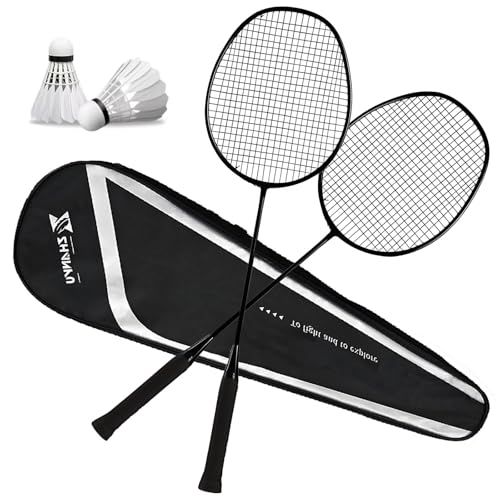 Badmintonracketar, 4U 82 g lätt bärbart badmintonset, komposit kolfiber stötande hållbara racketar, med 2 fjäderbollar och 1 väska, för nybörjare och vardagliga spelare