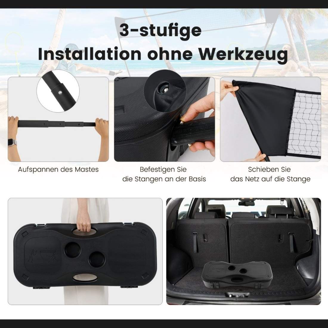 Badmintonset, badmintonnät med stativ, fjäderbollar, 4 racketar, justerbart volleybollnät, med bärväska, för inomhus, utomhus