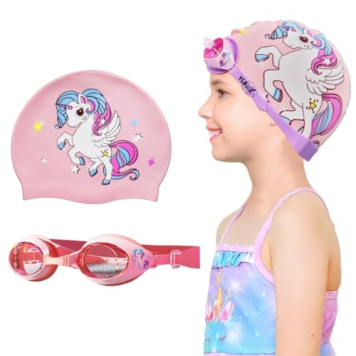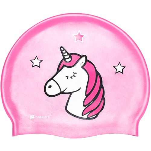 ZABERT Flickor barn badmössa för barn flickor 4 5 6 7 8 9 10 år silikon långt hår rosa enhörning v3