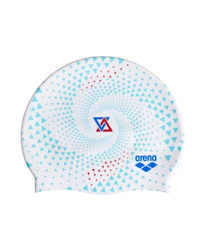 Arena Tryckt badmössa, unisex vuxen, silikon, dam och herr, intensiv träning, bekväm, halkfri badmössa för långt hår, vit (Fireflow)