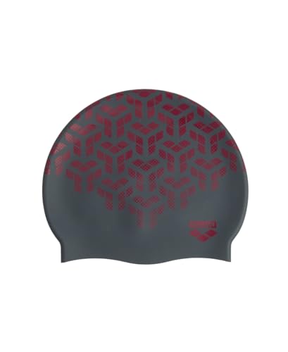 Arena Tryckt badmössa, unisex vuxen, silikon, dam och herr, intensiv träning, bekväm, halkfri badmössa för långt hår, svart/röd (Kikko/Black Red)