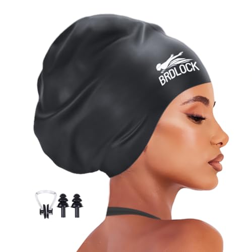 Badmössa för Långt Hår - Extra Stor för Kvinnor, Män, Vuxna, Barn - Premium Vattentät Silikon för Dreadlocks (Svart, XL)