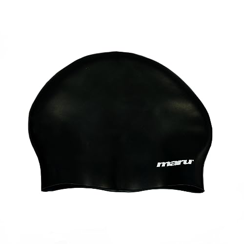 Maru badmössa med långt hår, 100% silikonbadmössa, unisex vuxen badmössa, lätta badmössor för män och kvinnor, vattentät, bekväm och hållbar badmössa (svart, en storlek)