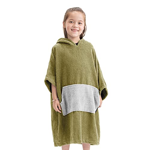 MOKANI Badponcho barn med huva, mikrofiberhandduk, poncho för flickor, pojkar, mjuk och absorberande strandhandduk badhandduk för badrum, pool, resor (barnhöjd: 100–140 cm)