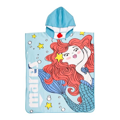 Mares Seaside Poncho Junior, badponcho – lätt och snabbtorkande – mikrofiber surfponcho för barn, strandponcho, bytehandduk, poolbadrock, turkos, unisex, Ljusblå, One size