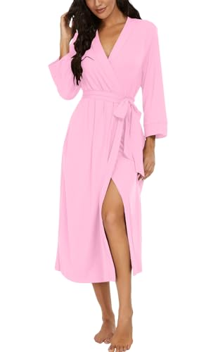PrinStory kvinnor lång/kort badrock stickad kimono morgonrock mjuka dammorgonrockar avslappnade damer myskläder, AA07 Ljusrosa, XXL