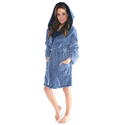 CelinaTex XS-XXXL badrock huva tvåfärgad kort påsydda fickor dam mikrofiber gosig fleece OEKO-TEX Miami