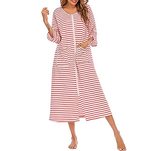 HUAZONG Morgonrockar för kvinnor, med dragkedja, badrock, kort/långärmad, mjuk, med fickor, nattkläder, sovkläder (röd, XL)