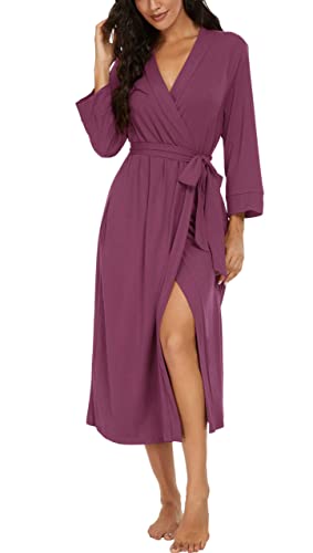 PrinStory kvinnor lång/kort badrock stickad kimono morgonrock mjuka dammorgonrockar avslappnade damer myskläder, AA06 lila röd, XXL