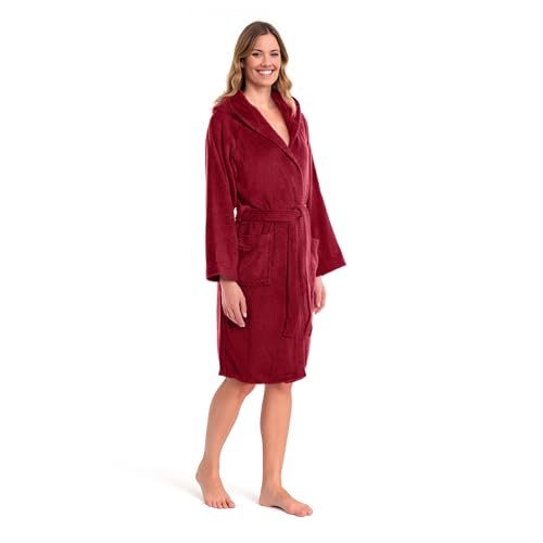 Caleffi Unisex badrock för vuxna, kvinnor, män, huva, av mjuk frotté, hydrofil bomull, 450 g/m², tvättbar, maskintvätt 40 °C, torktumlare, storlek 1009871, bordeaux, M/3XL, Bordeaux