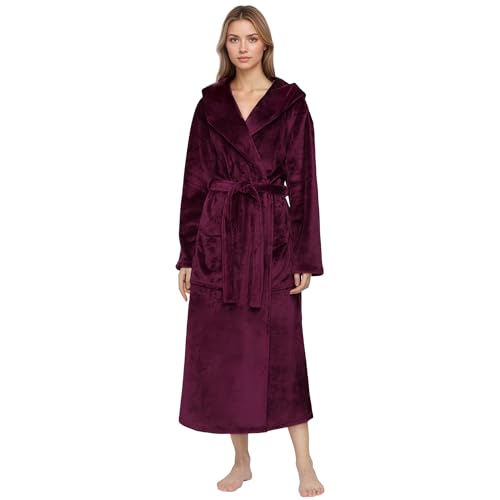 Morgonrock, dam, vinter, badrock dam, frotté med huva, stora storlekar, morgonrock lång, elegant, vardagskläder, långärmad badrock med huva, varma badrockar, mysiga hemmakläder, plysch, sovrock, röd